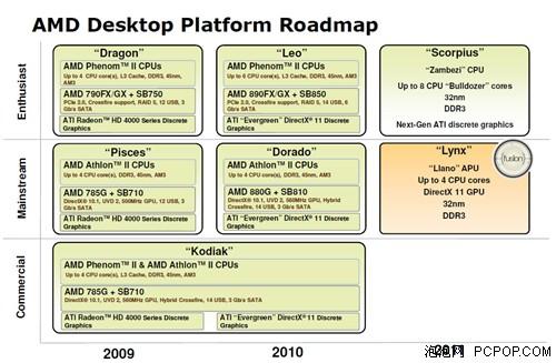 我們在890GX測試的時候曾為大家介紹過,890FX和890GX與SB850南橋搭配,構(gòu)成了AMD主打中高端市場的第三代“3A”平臺:“Leo——獅子座”的組合;而中低端市場則是需要用將于890FX同期發(fā)布的880G+SB810芯片組所組成的“劍魚座”平臺來延續(xù)785G+SB710的生命。