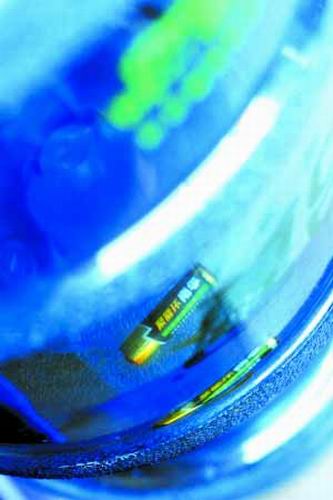 據(jù)曾老師介紹,他們固定在科技路一家純凈水發(fā)放處定“××”純凈水已5年有余,從來沒有更換過。在本月初,該純凈水發(fā)放處給辦公室送去4桶純凈水。搬水及上周五將水放上機子時,他們均沒有注意桶內(nèi)是否有異物。曾老師說,“昨日上午,我們在飲水機取水喝時,驚訝發(fā)現(xiàn)一顆5號電池沉在水桶的頸部,還浮著一根帶碘酒顏色的棉棒。我們都被嚇到了,自己喝的水中竟然有這般東西”。