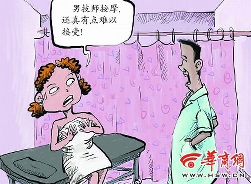 做美容時,會不會找男技師按摩?已婚3年的張女士連連搖手:“夏天穿個露背裝,被人碰一下都怪不自在的,還能光著背讓男人做按摩,也太曖昧了吧,讓人聯(lián)想到色情場所,老公肯定不同意。”