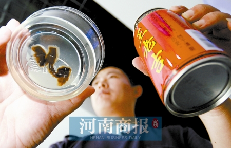 記者從鄭州市疾病控制中心理化室了解到,要檢測黏稠物質(zhì)對人體是否有害,對普通消費者來講,也不太容易。工作人員葛先生說,對人體有害的物質(zhì)和成分太多,無從檢測。“一項一項檢測的話,這罐王老吉用完都不夠,但是從食品感觀上說,這罐王老吉肯定是不合格的!