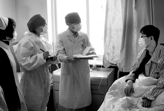 就在記者在醫(yī)院采訪的時候,院長馮虹又為抗甲流忙開了。市衛(wèi)生局領(lǐng)導(dǎo)到醫(yī)院,現(xiàn)場指導(dǎo)增設(shè)重癥病房的事。