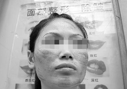 6月10日晚,喜歡美容的李信瓊在金花橋金興南路97號一家美容店內(nèi),做了一次所謂的“光子祛紅血絲”。但半個小時的功夫,她那張曾引以為豪的白凈面容,竟布滿了一條一條令人觸目驚心的“燒痕”。昨日,在屈辱和絕望的雙重打擊下,李信瓊再次來到店內(nèi)討要說法……