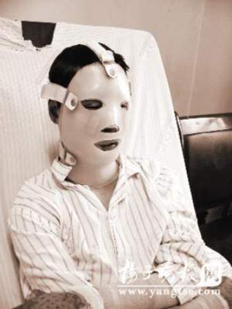 去年本報(bào)報(bào)道過的因燒傷而毀容的鹽城“面具男孩”昨天來到南京中大醫(yī)院復(fù)診,小伙子摘下面具露出“尊容”,醫(yī)生驚奇地發(fā)現(xiàn),通過戴1年左右的奇異特質(zhì)面具,小伙子面部恢復(fù)情況很好,完全沒有增生的疤痕和疙瘩。