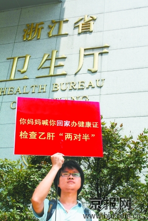 上網(wǎng)查詢乙肝相關(guān)資料后,雷闖更是驚訝地發(fā)現(xiàn),全國(guó)上億名乙肝病毒攜帶者都遭受著歧視。雷闖告訴記者,其實(shí)早在2003年,他所在的浙江大學(xué)一名大四學(xué)生周某,在考取公務(wù)員后,卻因?yàn)橐腋尾《緮y帶者的身份而被拒之門(mén)外。