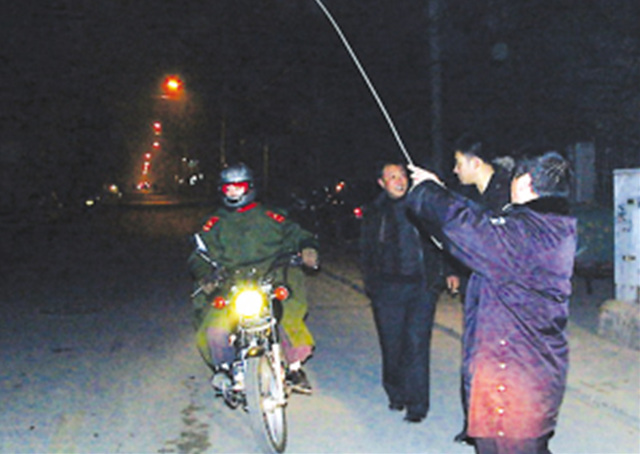 民警告訴記者,這根纜線已經(jīng)放倒幾位行人,其中受傷嚴重的潘女士脖子被“勒”了,剛?cè)メt(yī)院。記者發(fā)現(xiàn),每當有電動車或摩托車經(jīng)過這里時,民警都會將這根纜線舉起來,讓大家鉆行。民警表示,他們已經(jīng)通知相關(guān)部門前來查看到底是哪家的通訊電纜。