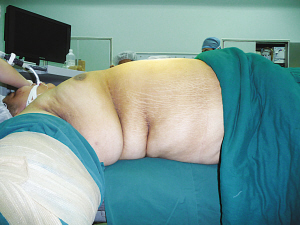 三天后,經(jīng)過周密的準(zhǔn)備,田曉的手術(shù)正式開始?梢驗樘飼詫嵲谔亓耍中g(shù)中要處理的問題就多了許多。手術(shù)臺太小還是可以克服的小問題,怎么上手術(shù)臺可動了一番腦筋。為了讓田曉上手術(shù)臺,醫(yī)院還出動了幾個身強力壯的年輕醫(yī)生,可是都搬不動田曉。于是梁輝副主任借鑒了國外的做法,借助一塊很大的可以移動的“滑板”,才將他移動到手術(shù)臺上。