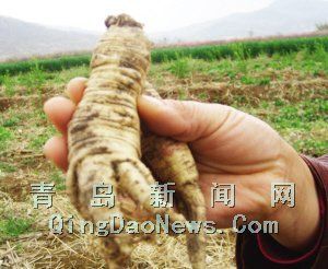 記者從一名村民處見到了兩棵剛被挖出來的人參,這些人參的根莖十分粗大,根低部較小分叉,呈黃白色,最大的直徑約5厘米,長約20厘米,最小的像小蔥般粗細(xì)。但由于人參剛發(fā)芽還看不出葉子是什么形狀。藏村60多歲的村民呂先生告訴記者,很多年以前,有名外地人曾在錢谷山上種植過人參,現(xiàn)在挖出的可能是當(dāng)時留下的種苗。昨天下午,記者將一棵人參送到了即墨市林業(yè)局,森保站韓站長稱,根據(jù)外型特點(diǎn)判別確實(shí)是山參,但不像是野生的,有可能就是當(dāng)時留下來的種苗。