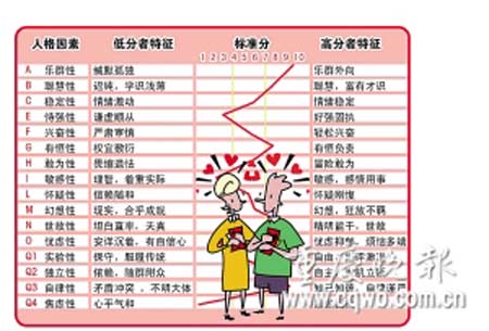 目前流行的“性格婚檢”,主要包括“卡特爾16人格因素問(wèn)卷”等。這一測(cè)試體系是美國(guó)心理學(xué)家卡特爾運(yùn)用一系列嚴(yán)密的科學(xué)手段研制出的,目的是認(rèn)清自己和對(duì)方。