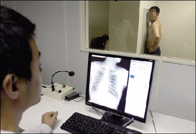 記者查看李建勇檢查身體所拍的各種各樣的X光片、B超圖片發(fā)現(xiàn),他的說法屬實(shí):把正常的人體臟器分布圖翻過來看,就是他的臟器分布圖。
