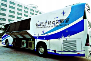食品安全移動(dòng)實(shí)驗(yàn)室,到底是個(gè)什么樣子?單從外觀來看,這就是一輛普普通通的12米長(zhǎng)的大客車,只是客車外噴上了藍(lán)色的“食品安全移動(dòng)實(shí)驗(yàn)室”的字樣。車廂里可是“麻雀雖小,五臟俱全”,擺放了各種精密儀器、試管、量杯……