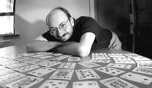 普里德摩爾記憶撲克牌也使用同樣的記憶技巧,任何兩張紙牌他都會(huì)用一個(gè)相應(yīng)物體來代表它們,而52張撲克牌共有2704個(gè)可能的組合,所以他必須用2704個(gè)相應(yīng)物體來代表這些紙牌。普里德摩爾說:“在我的記憶體系表中,‘方塊十’加上‘梅花五’代表一把尺,‘方塊六’加上‘黑桃四’代表一張椅子,然后我會(huì)將這些象征物在大腦中組成一個(gè)故事,它能幫我精確記住這些牌的順序!