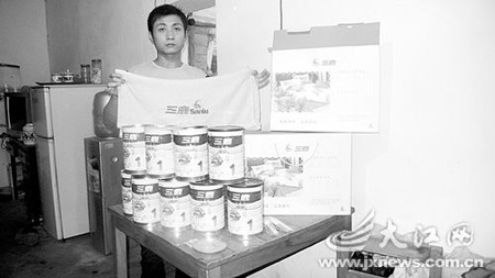 湯增銀說(shuō),小蔡沖吃的三鹿奶粉均在九江的大超市買(mǎi)的。他從來(lái)沒(méi)刻意保留超市小票,“誰(shuí)會(huì)想到這么有名的‘三鹿’會(huì)出問(wèn)題”。