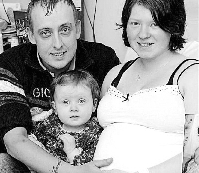 據(jù)報(bào)道,現(xiàn)年18歲的勞拉·威廉姆斯來自英格蘭薩洛普郡什魯斯伯里市,目前與其28歲的丈夫、清潔工阿萊德·威廉姆斯一同居住在娘家。勞拉和阿萊德是在一個(gè)朋友家的聚會(huì)上一見鐘情的。18個(gè)月前,他們生下了共同的愛情結(jié)晶——女兒卡莉。生下卡莉后僅9個(gè)月,勞拉便再度懷孕,不過直到妊娠12周時(shí)她才得知,并且在家庭醫(yī)生的建議下前往皇家什魯斯伯里醫(yī)院接受B超檢查。他們很快便獲悉了一個(gè)“壞消息”,原來這是一對(duì)連體雙胞胎,預(yù)計(jì)在子宮中存活不會(huì)超過14周!