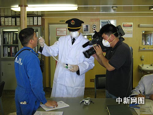 外高橋邊檢站民警告訴記者,巴拿馬籍“曼哈頓橋”輪于昨天(5月5日)上午8時靠泊外高橋碼頭。該輪由于途徑甲型H1N1流感疫情較重的美國,且船上有一名菲律賓籍船員體溫異常,邊檢和衛(wèi)檢啟動聯(lián)動應(yīng)急預(yù)案,在第一時間對其進(jìn)行了專門檢查和檢疫。