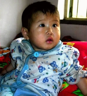 10月21日,記者冒雨與衡水復(fù)明眼科醫(yī)院的醫(yī)護(hù)人員一行來(lái)到了故城縣武官寨鎮(zhèn)叩莊村,小田盈的爺爺、奶奶早就等在門口了。小田盈在爸爸的懷里起勁地吮吸著奶瓶。記者看到田盈的上嘴唇左部一直到左鼻孔有一道長(zhǎng)長(zhǎng)的疤痕。右前臂明顯彎曲,摸上去有硬塊。俗話說(shuō)“三翻六坐八爬爬”,目前小田盈都9個(gè)半月了,別說(shuō)爬了,連坐都坐不起來(lái)。