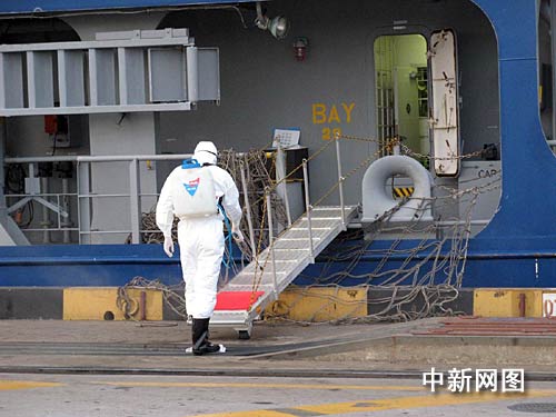 今天上午9時(shí)許,上海外高橋檢驗(yàn)檢疫局致電外高橋邊檢站,告知將于當(dāng)晚18時(shí)靠泊外高橋四期碼頭的巴哈馬籍“海豐聯(lián)翔”輪上一名菲律賓籍船員,在自寧波駛往上海港途中,被確診感染甲型H1N1流感,這是目前國(guó)內(nèi)海港口岸發(fā)現(xiàn)的首起甲型H1N1流感船員患者。隨后,邊檢和衛(wèi)檢部門(mén)制定了聯(lián)合檢查預(yù)案。