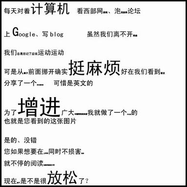 看到這樣的“保健”圖片,網(wǎng)友們不禁樂了,有網(wǎng)友稱雖然其很山寨,但是還是能夠達(dá)到一定的鍛煉效果的。