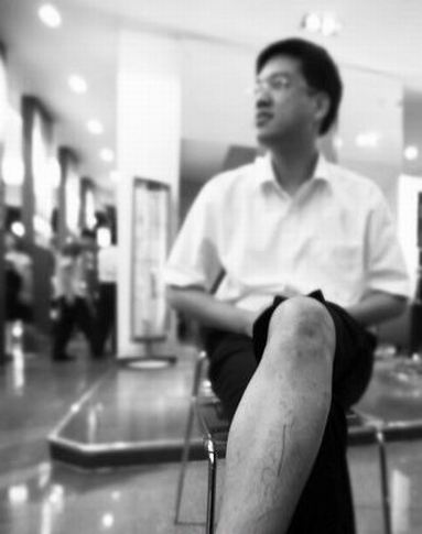 據(jù)李先生回憶,他于10月29日晚8時(shí)40分在海口金龍路的花仙子休閑會(huì)館理發(fā),突然從左側(cè)竄出來一只大老鼠,“哧溜”一下子鉆進(jìn)他的左褲腿往上爬!袄鲜笤谕壬嫌肿ビ忠,我跳起來使勁甩腳卻甩不出去。”李先生告訴記者,由于事發(fā)突然,老鼠一下子就竄到了大腿上抓咬,當(dāng)下他就疼痛難忍地跳起來。理發(fā)師羅師傅順勢(shì)用手將李先生褲子的老鼠捏住,并大聲叫喊“要不要捏死在里面?”“我怕老鼠捏死后太臟,就沒讓他們那樣做!崩钕壬f。