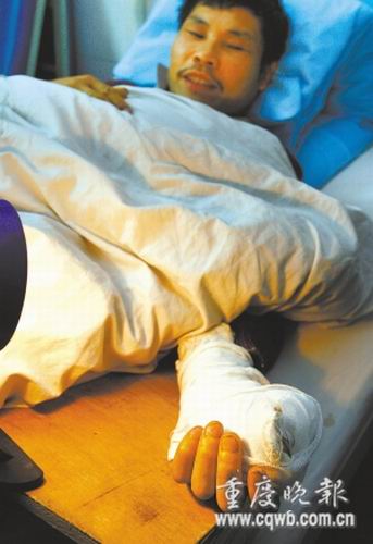 一家人歡歡喜喜殺肥豬過年,不料,被捅了一刀的大肥豬突然牢牢將殺豬人的手指咬在嘴里。前天(12月24日)下午,躺在病床上的渝北區(qū)農(nóng)民張?zhí)熨F哭笑不得,雖然手指已接回,但5000多元的醫(yī)療費已遠遠超過宰殺年豬的價值。