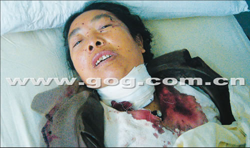 昨日下午,記者在貴醫(yī)附院看到了這名躺在病床上的老人。老人大約50多歲年紀(jì),女性,衣著較為整潔。接診護(hù)士告訴記者,老人剛被送到醫(yī)院的時候可以說話,但是問及家里的情況時,老人卻拒不回答。同時,護(hù)士還表示從老人的只言片語中聽到,老人說咽喉部位插的水果刀是她自己捅的。