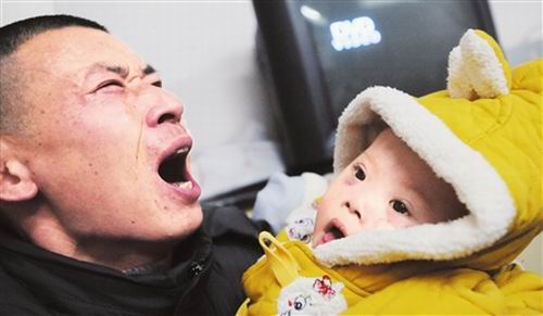 昨日(1月20日)下午,從彭州趕到成都的范冉和妻子廖繼軒來到成都市兒童醫(yī)院重癥監(jiān)護室,看望兒子范瑞。10個月大的范瑞在兒童醫(yī)院已經住了3個多月,范瑞不僅臉色蒼白,還目光呆滯,因為他是智障兒,并且還患有嚴重的先天性心臟病。據悉,范瑞原本住在成都市某醫(yī)院,但因為3個月前病危,被那家醫(yī)院轉送到成都市兒童醫(yī)院,直到現在。