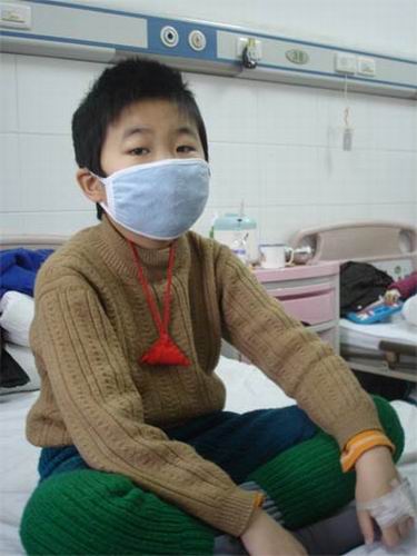 昨日下午3時,記者進入軒軒的病房,見有人來,軒軒勉強地從病床上支撐著坐了起來,一副口罩掛在孩子稚嫩的臉上,將整個面部遮擋了大半部分,只是一雙雖受病痛折磨依然眼光堅毅的眼睛露在了外面。萬玲告訴記者,這是因為怕細菌感染引起更糟糕的結果,所以遵醫(yī)囑戴起來的,每天只可以摘下一小會。小宇軒看到記者并沒有顯出害怕,但是虛弱的表情已經(jīng)寫在了臉上,孩子的身上開始出現(xiàn)很多的血印。一雙原來白嫩的小手已清晰可見蠟黃色了,手背上則是剛扎完針包著的紗布。