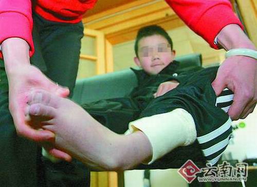 張?zhí)m輝夫婦帶著檢查結(jié)果回到昆明后,仍然沒有放棄救治兒子。爸爸在外拼命地賺錢養(yǎng)家糊口,給兒子買藥治病,媽媽則在家全心照顧兒子,一家人的經(jīng)濟(jì)都壓在爸爸身上!皟鹤用刻斓乃幬镄枰ㄙM(fèi)70塊錢,隨著一天一天地長大,總要上學(xué)啊!”張?zhí)m輝說,4歲那年,他們把兒子送到了幼兒園,在幼兒園里吃飯、走路、上廁所都要靠老師了。
