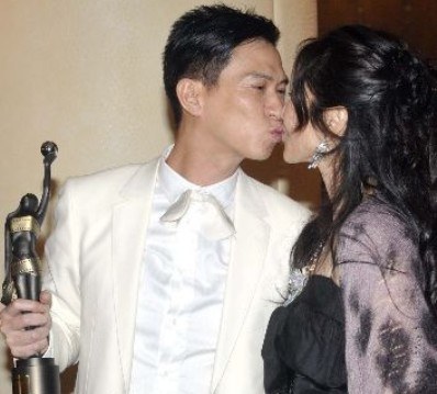 張家輝加冕金像獎影帝 與明星妻子關(guān)詠荷親吻