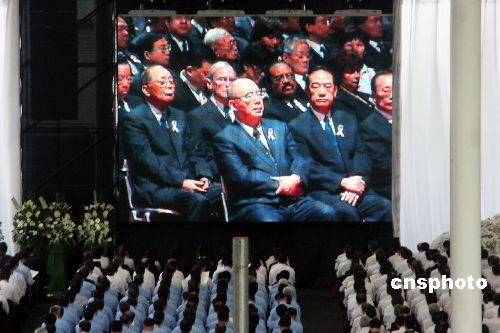圖為在第二告別分場中央熒幕上正直播主場所的情景,可見有中國國民黨主席吳伯雄、親民黨主席宋楚瑜等臺灣政界人士。
