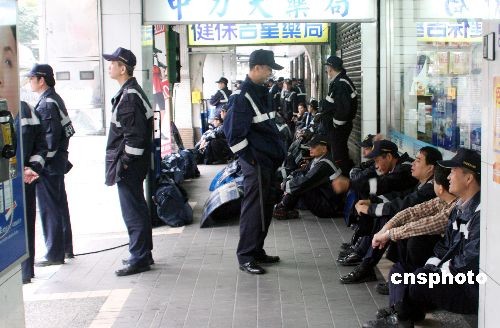 圖為特偵組附近每一條街道都有大批警力分層戒備,包括騎樓下也有警察在等候應(yīng)對(duì)異常情況。中新社發(fā) 黃少華 攝