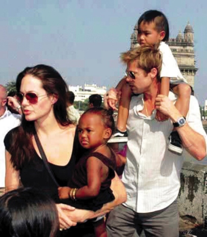 皮特(右一)被朱莉(左一)改造成“居家男人”
