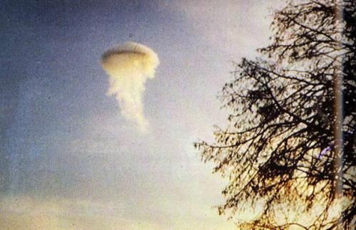 1974年11月17日早晨,勞爾森帶著他的愛犬在丹麥日德蘭半島散步,突然看到一團白云里裹著一個外形奇特的物體。他在距離這個物體飛到大約250到300米遠的地方時拍下了這張照片。