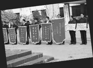 百姓自發(fā)送書記,錦旗、萬(wàn)民傘、清官旗齊了