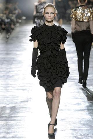 對經(jīng)典“小黑裙”的挑戰(zhàn),一直是設計師修行道路上的必修課,Lanvin這條裙子的款式是再經(jīng)典不過的基本款,卻因大量如蝴蝶花瓣般的裝飾物而變的豐富起來。