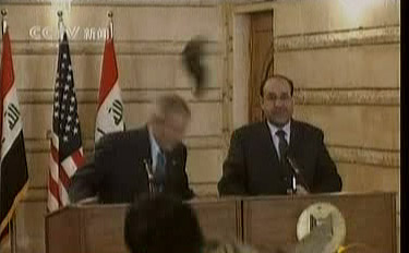 布什突訪伊拉克 遭憤怒記者臭鞋襲擊(2)