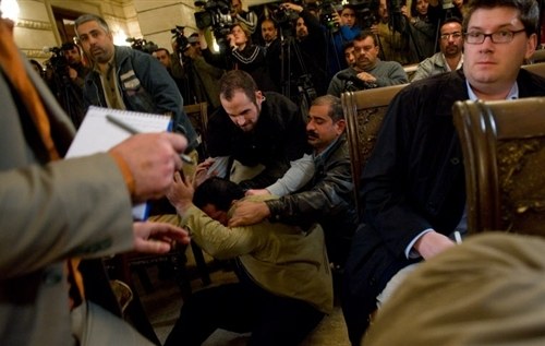 丟飛鞋襲擊布什的男子被保安制服。