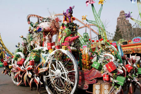 次此歡樂節(jié),在北京歡樂谷入口處及歡樂舞臺(tái)上,盛大的迎賓表演拉開帷幕,主要的表演活動(dòng)有:卡通音樂劇《歡樂迎財(cái)神》福、祿、壽、喜、財(cái)五神鬧春別開生面;全年經(jīng)典歌舞大薈萃的歡樂什錦秀表演;活體雕塑表演;炫彩夜光彩車送賓活動(dòng)。歡樂谷的巡游活動(dòng)可謂是獨(dú)具特色,“年俗百藝歡樂節(jié)”期間,大型的巡游活動(dòng)將歡樂和祝福送到每一位游客身邊。主要的巡游陣容有:百丑鬧春方陣、傳統(tǒng)社火方陣、冰雪童話方陣、神秘魔幻方陣、時(shí)尚鼓樂方陣、蟲蟲狂歡方陣,屆時(shí)用最絢麗的色彩、最隆重的氛圍、最龐大的陣容,讓快樂在此刻永遠(yuǎn)定格。