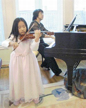 今年7歲的加拿大華裔音樂(lè)神童Mercedes Cheung,自小酷愛(ài)音樂(lè),生于音樂(lè)世家,父親張怡飛是小提琴家及教授,母親戴美玲博士是皇家音樂(lè)學(xué)院考官兼鋼琴老師。4歲10個(gè)月,她要求父親教授小提琴,如今已修習(xí)皇家音樂(lè)學(xué)院第9班至文憑級(jí)水平;母親教她彈奏鋼琴,現(xiàn)時(shí)已在第8至9級(jí)程度。其父母特別為她籌辦小提琴個(gè)人演奏音樂(lè)會(huì)。