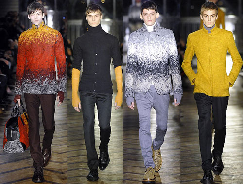 在男裝界,從80年代開始,每隔10年就是一次新舊世界的大更替,原來的明星失去了創(chuàng)新的能力,轉(zhuǎn)而鞏固技藝;新的明星脫了邊緣色彩,成為新一輪標(biāo)準(zhǔn)的制定者。在2008秋冬季的男裝舞臺上,沒有以往Dior Homme似的“逐鹿中原”的兇猛勢力,來自新舊兩個世界的設(shè)計師各自照亮頭頂?shù)囊黄炜铡km然看不到刺激的新銳力量很遺憾,卻應(yīng)了一句老話:“百花齊放,百家爭鳴。”
