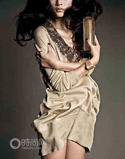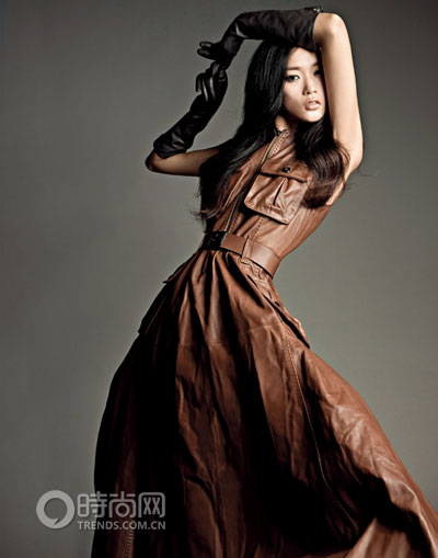 完全皮質(zhì)棕色連衣裙,飄揚(yáng)裙擺氣勢(shì)十足。
