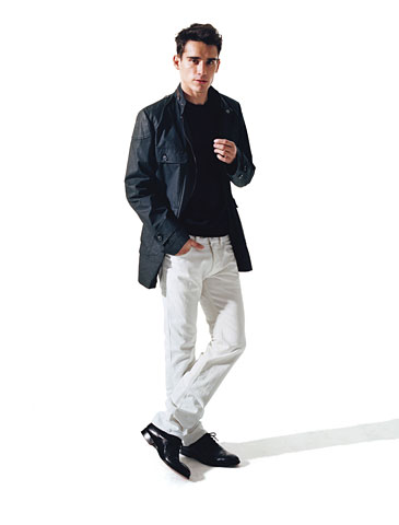 五:夜間的白色仔褲?肯定!讓白色仔褲也能適合夜間穿著?那么,剩下的部分你要絕對小心才行。不但要簡潔大方,更要充實(shí)自然。一件黑色的輕薄高領(lǐng)開司米運(yùn)動(dòng)衫,和一件合身的小夾克,都是不錯(cuò)的選擇。跳過運(yùn)動(dòng)鞋,選擇黑色的復(fù)古皮鞋吧,那才是最合適你的裝備。