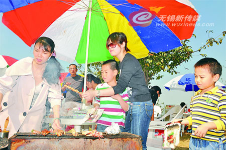 10月12日,在無錫濱湖區(qū)一個(gè)“農(nóng)家樂”旅游點(diǎn),來這里休閑的人們與孩子一起燒烤。近幾年來,我市依托資源優(yōu)勢(shì),大力發(fā)展生態(tài)觀光旅游業(yè),推出“農(nóng)家樂”等一些品牌景點(diǎn)和項(xiàng)目,吸引了眾多游客和城區(qū)市民度假休閑,既豐富了旅游內(nèi)容,又增加了當(dāng)?shù)剞r(nóng)民收入。