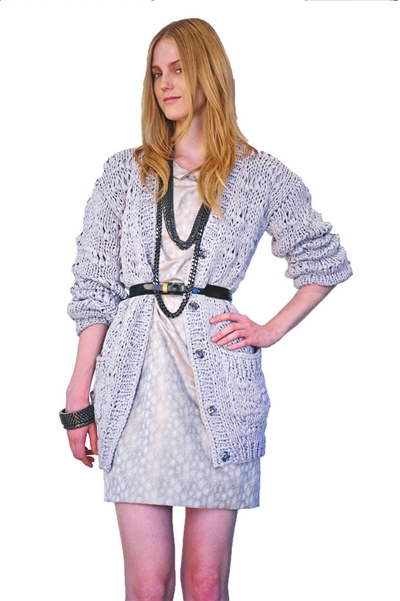 。牬送,將棒針針織與雪紡或起毛皮革等不同面料進(jìn)行搭配,可讓針織衫呈現(xiàn)全新的表情。由于棒針毛衣帶給人本身已經(jīng)很狂野了,所以在色彩的選擇上以黑色、茶色和紅色為主,雖說流行,但也有人一穿這種灰暗的顏色就顯得老土,怎么辦呢?這就要靠值得玩味的細(xì)節(jié)了。比如抽帶、細(xì)皮條和大紐扣……(舒志娟)