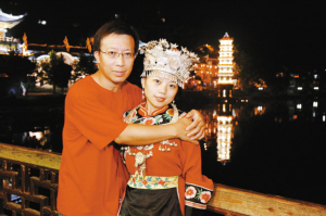 我請(qǐng)了假,盡地主之誼,帶著他去逛桂林!拔逅摹鼻嗄旯(jié)那天,我們?nèi)チ嗽铝辽,在那里我們以手捧月亮的方式拍了張照片,然后他變戲法似的從身后拿出一朵玫瑰,單腳跪地正式向我表達(dá)了他的愛(ài)意。我沒(méi)有拒絕也無(wú)法拒絕,從這個(gè)善解人意的男人出現(xiàn)在我面前時(shí),我的心已經(jīng)被他奪走了。