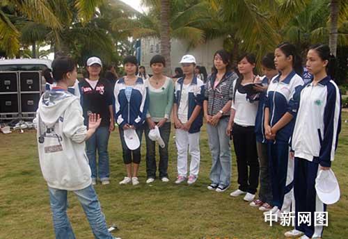 (海南外國(guó)語(yǔ)學(xué)院的志愿者一早趕到彩排現(xiàn)場(chǎng),集中精力聽(tīng)從歡樂(lè)節(jié)導(dǎo)演指示)