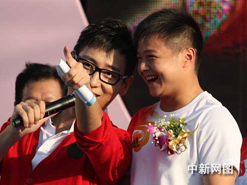 主持人現(xiàn)場(chǎng)采訪奧運(yùn)冠軍龍清泉