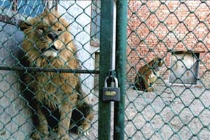 一個月前,動物園的工作人員將4歲多的公獅胖子換到這個獸舍代替奧肥;蛟S因為想念奧肥,同同對這個新來的“第三者”十分逃避。胖子體形大,讓尚未和它熟識的同同害怕不已。而同樣未接觸過老虎的胖子,也對同同心生恐懼。在最初的幾天,它們各自躲在自己的獸舍里發(fā)出嘶叫,不敢越雷池一步。放在一起后,它們還曾經(jīng)互相抓撓對方,直到最近它們倆才開始熟悉。