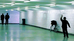 北京的天氣漸冷,大風(fēng)也時不時光顧一下,這對習(xí)慣了戶外健身的中老年人來說,稱得上是不利因素。在長安街下的一處地下通道內(nèi),打太極的市民顯得格外專注,絲毫不比公園里差,并且還不時有過往的路人捧場。