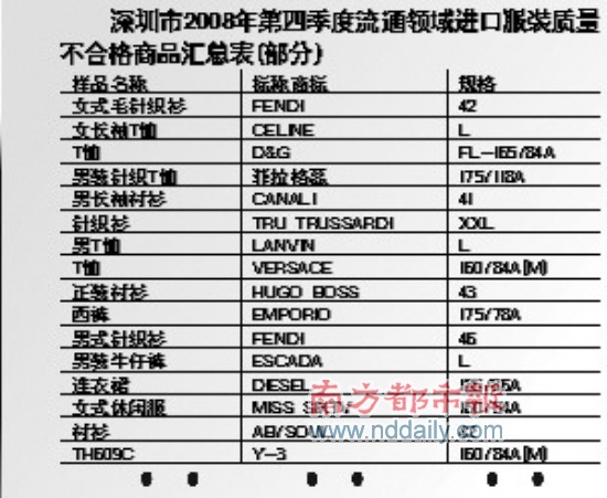 寶姿、芬迪(FENDI)、阿瑪尼(EMPORIOARMANI)等國際頂級品牌出“問題”了。深圳市工商局近日發(fā)布了深圳市第三、四季度流通領(lǐng)域服裝、進口服裝質(zhì)量監(jiān)測情況。結(jié)果顯示,被抽查的101批次國產(chǎn)服裝中有34批次不合格,被抽查的30批次進口服裝中則有18批次不合格,合格率僅為40%.