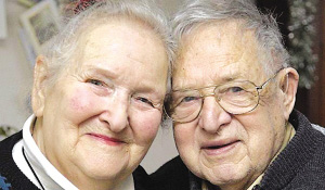 英國漢普郡滑鐵盧維爾市84歲老翁約翰·比尤沃辛和81歲妻子瑪格麗特盡管都已年過8旬,但他們仍像60年前剛剛結婚時那樣恩愛甜蜜。